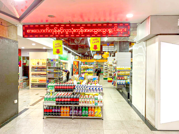 Opened in 2000, Ga Mone Pwint (Theingyizay) is our third shopping center, situated at Theingyizay Market (D Hall, A Block), corner of Shwedagon Pagoda Road and Maha Bandula Road, Latha Township. This branch offers a variety of food items, consumer goods, and cosmetics.
